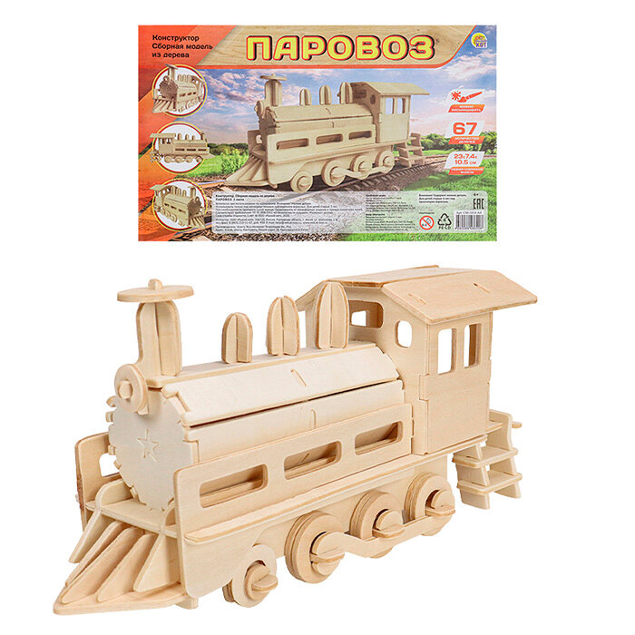 Конструктор. Сборная модель из дерева. Паровоз | СМ-1014-А4