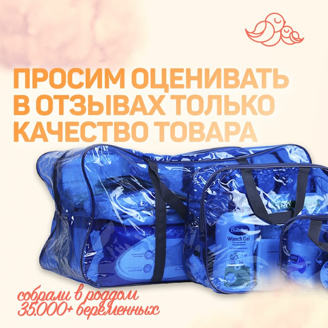 Ниже Вы можете прочитать отзывы на Сумка в роддом для мамы и малыша готовая с наполнением, 29 предметов + 3 сумки, комплектация "Премиум", синяя, ознакомится с подробными характеристиками, посмотреть интересные обзоры и фотографии на Сумка в роддом для мамы и малыша готовая с наполнением, 29 предметов + 3 сумки, комплектация "Премиум", синяя.