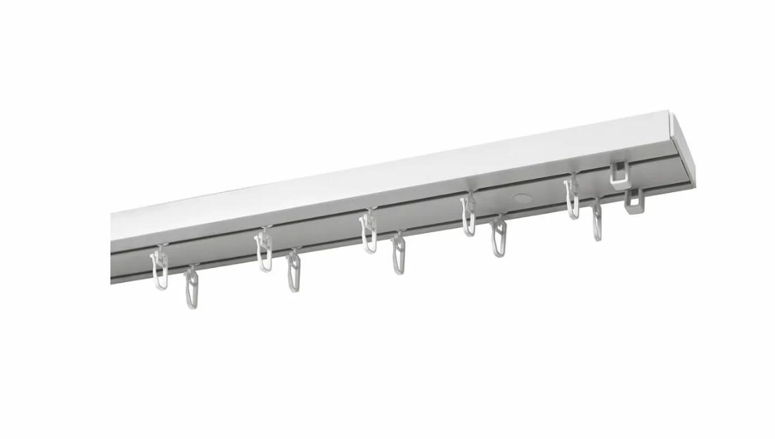 | Плюсы: | Обыкновенный дешевый и надежный потолочный карниз. Если есть 10 минут проверить отверстия для крепления штор - это ваше. |