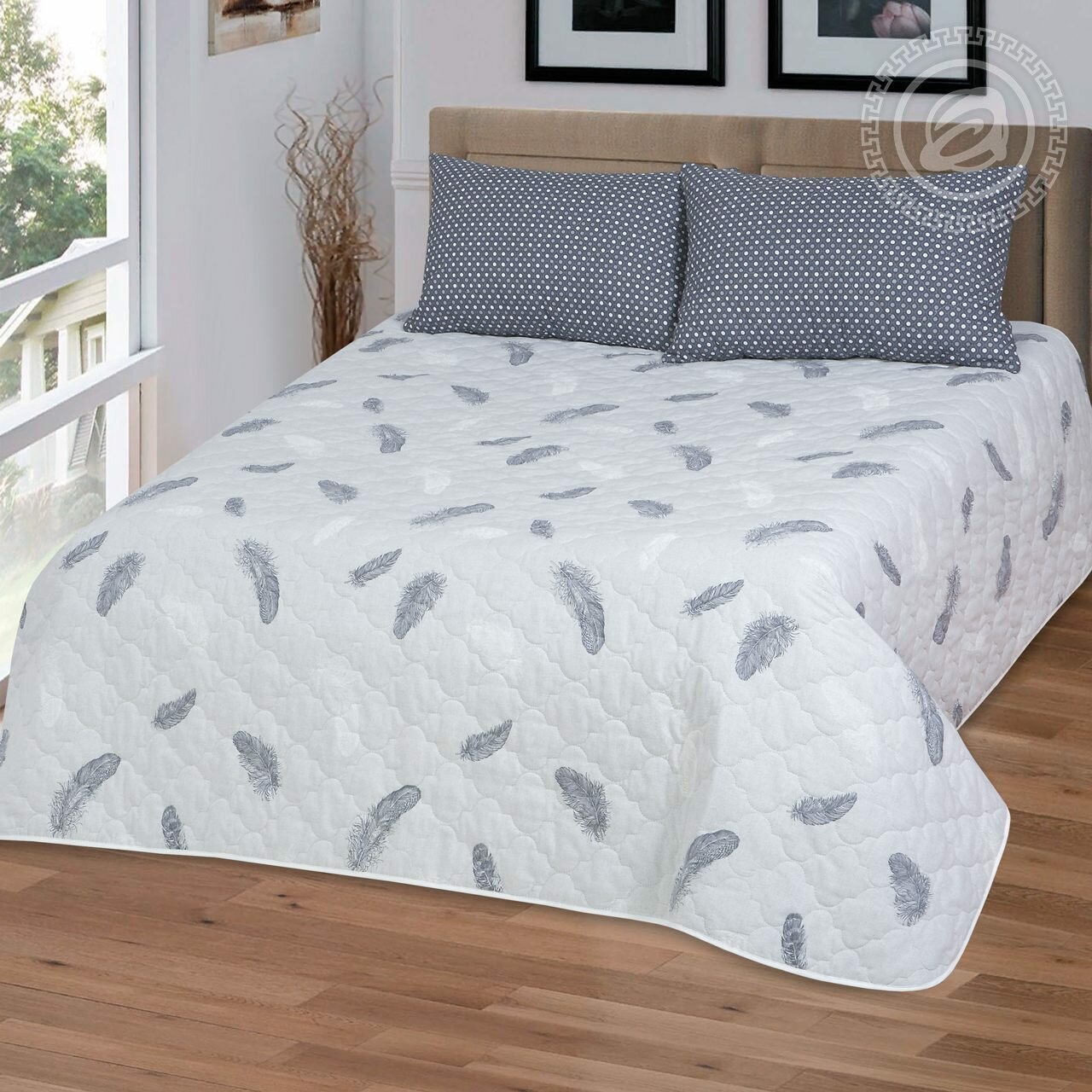 Покрывало Феникс Серый 215х240 Поплин АртПостель Перья