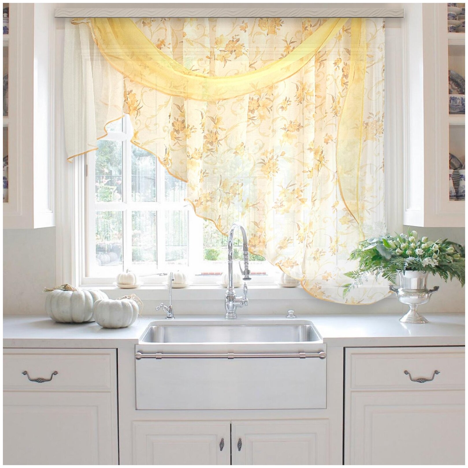 Комплект штор для кухни Witerra Иллюзия, 300х150 см, золото, правая, 100% полиэстер