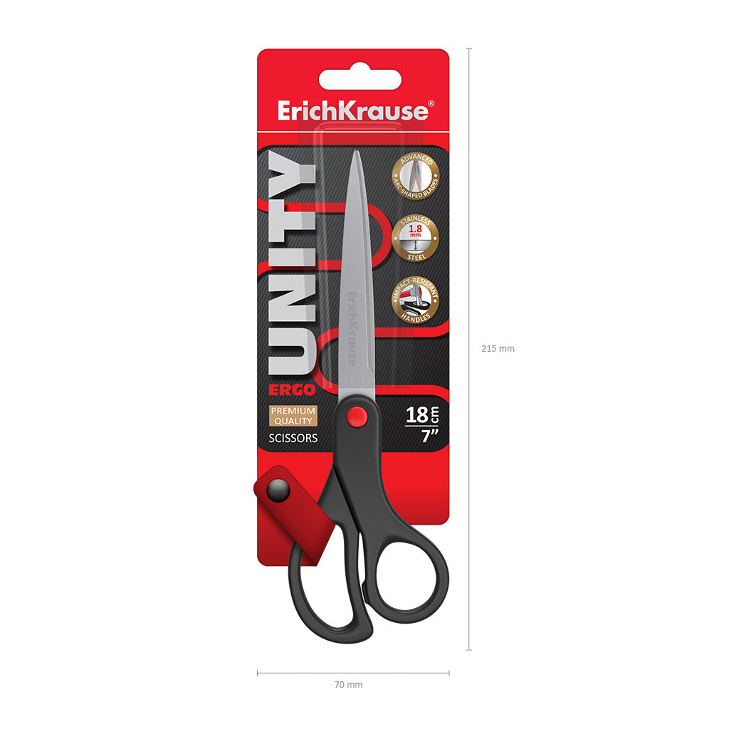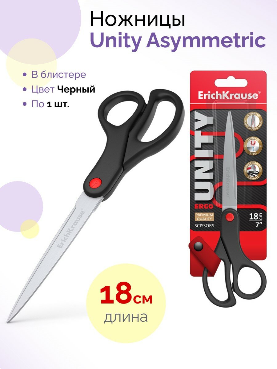 Купить Ножницы Erich Krause Unity Asymmetric, 18 см, черный (35104)