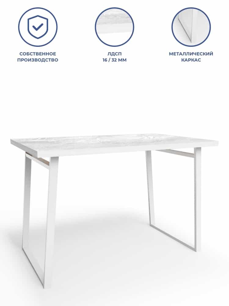 Ардано 110х70х75 Стол кухонный металл белый, лдсп айконик