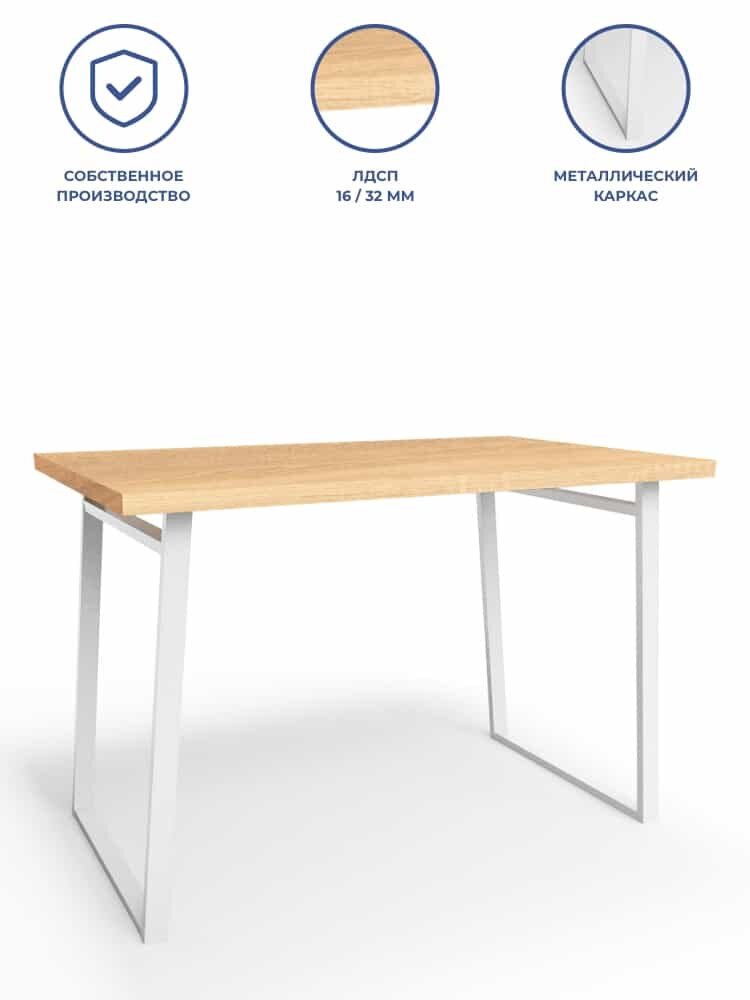 Ардано (110х70х75) Стол обеденный (столешница ЛДСП дуб вотан + ножки металл белый 9003)