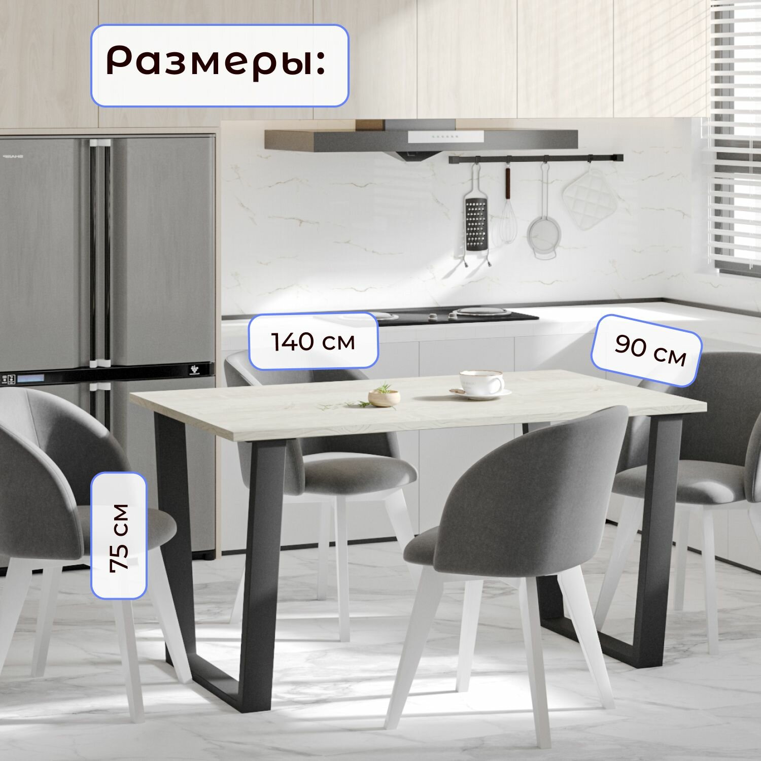 Стол кухонный обеденный атлант 11 EGGER: Древесина белая нераскладной в стиле лофт