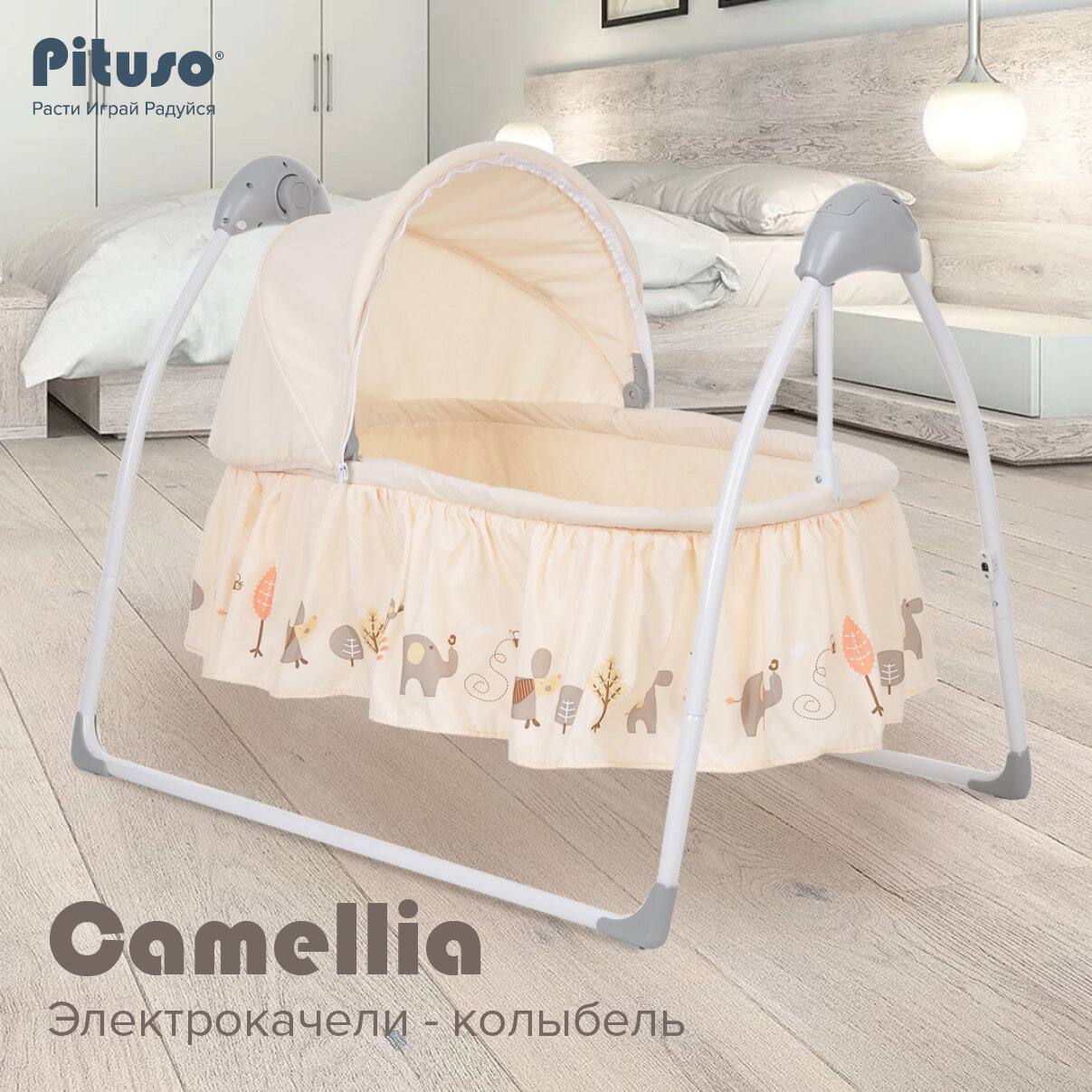 Колыбель-электрокачели Pituso Camellia с пультом д/у, Camellia Beige Zoo/ Зоопарк, бежевый