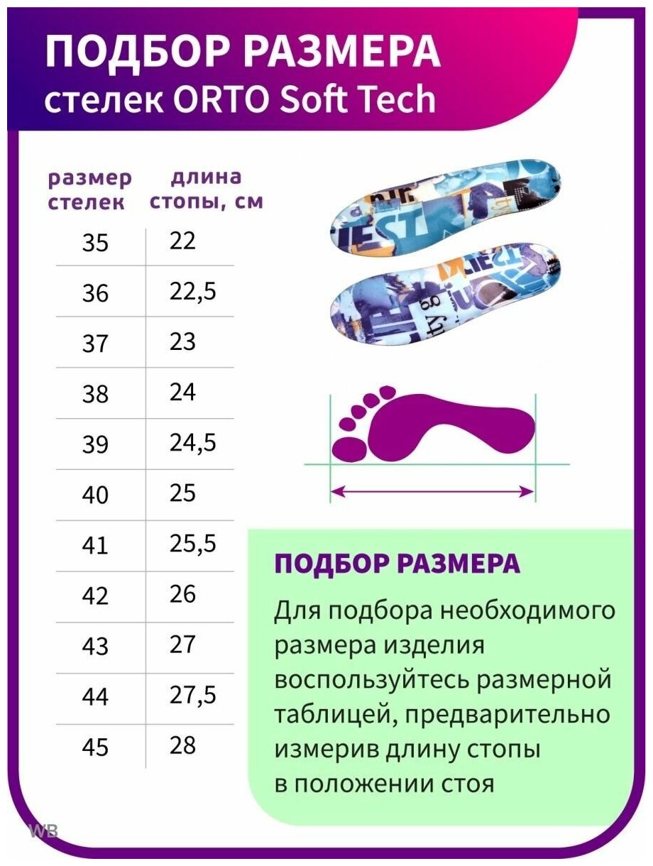 ORTO Стельки ортопедические Soft Tech, р-р: 42, 24,5 см, цвет: голубой/фиолетовый