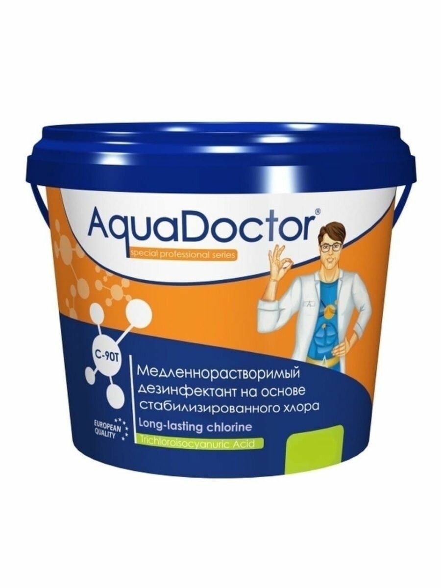 AquaDoctor, хлор, 1кг ведро, табл.200гр, медленнорастворимый, на основе 90% активного хлора (C-90T/1KG), уп.1