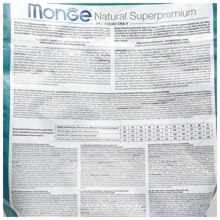 Monge Dog Speciality Hypo корм с лососем и тунцом для взрослых собак всех пород 12 кг