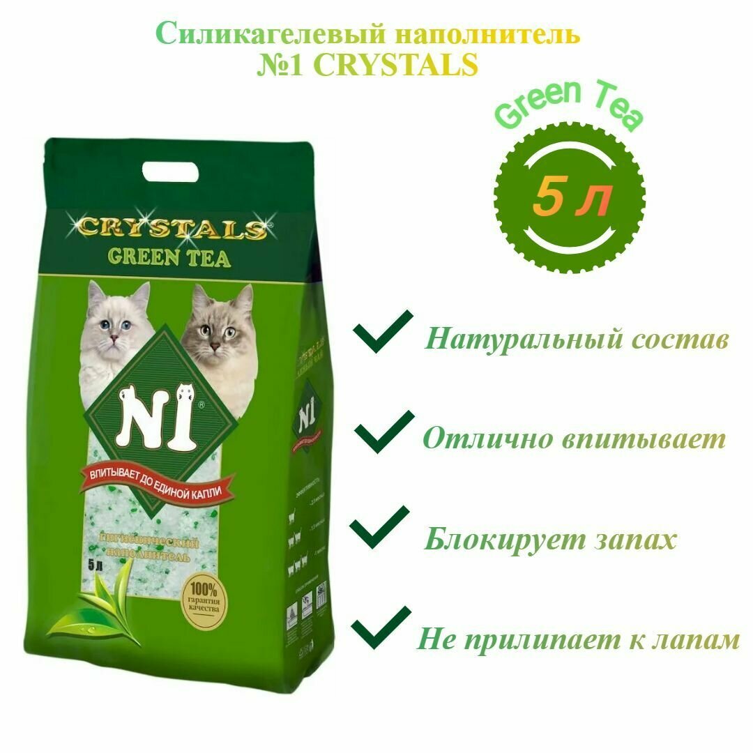 Купить N1 Crystals Green Tea наполнитель силикагелевый Зелёный чай - 5 л