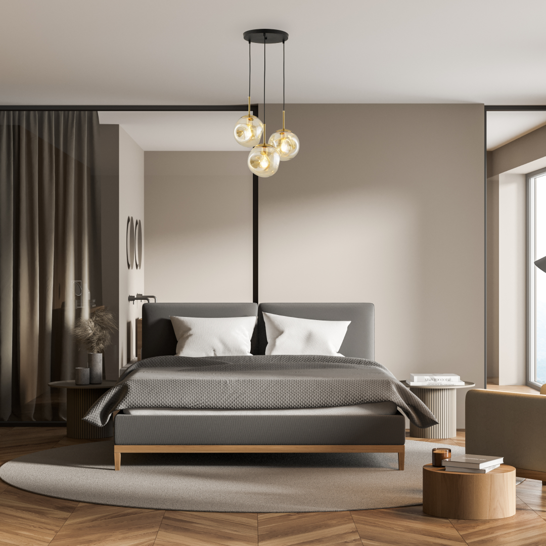 Подвесная люстра Moderli Samitra V2101-P, Накаливания, Стекло/Прозрачный/Металл/Черный, На кухню, Современный, Шар