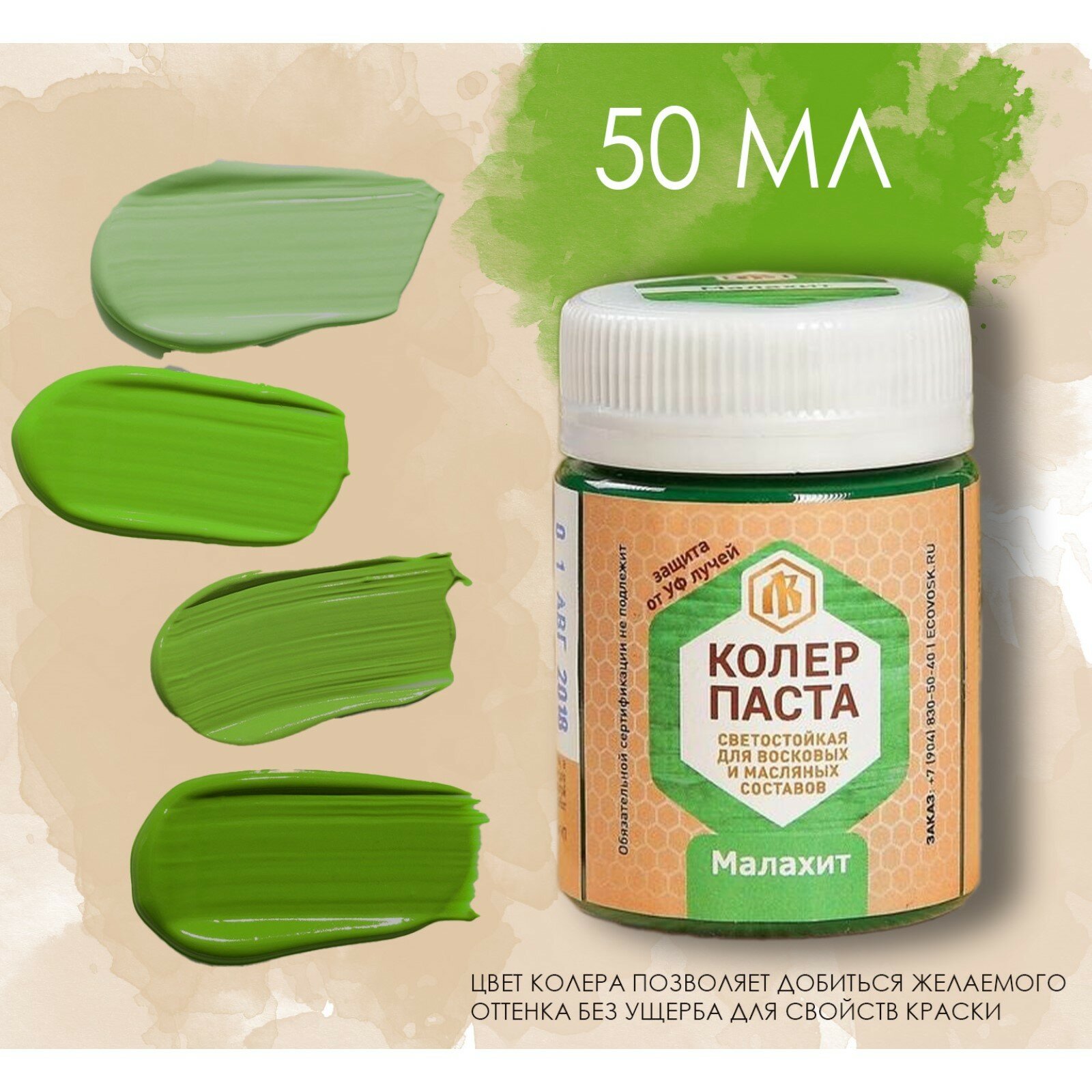 Колер паста малахит для лоскутного воска 50мл