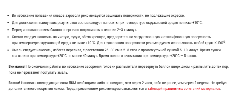 | Время высыхания | 2 часов |