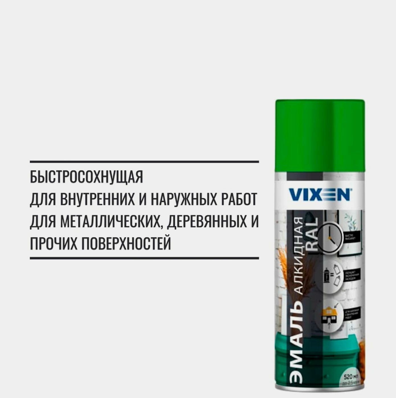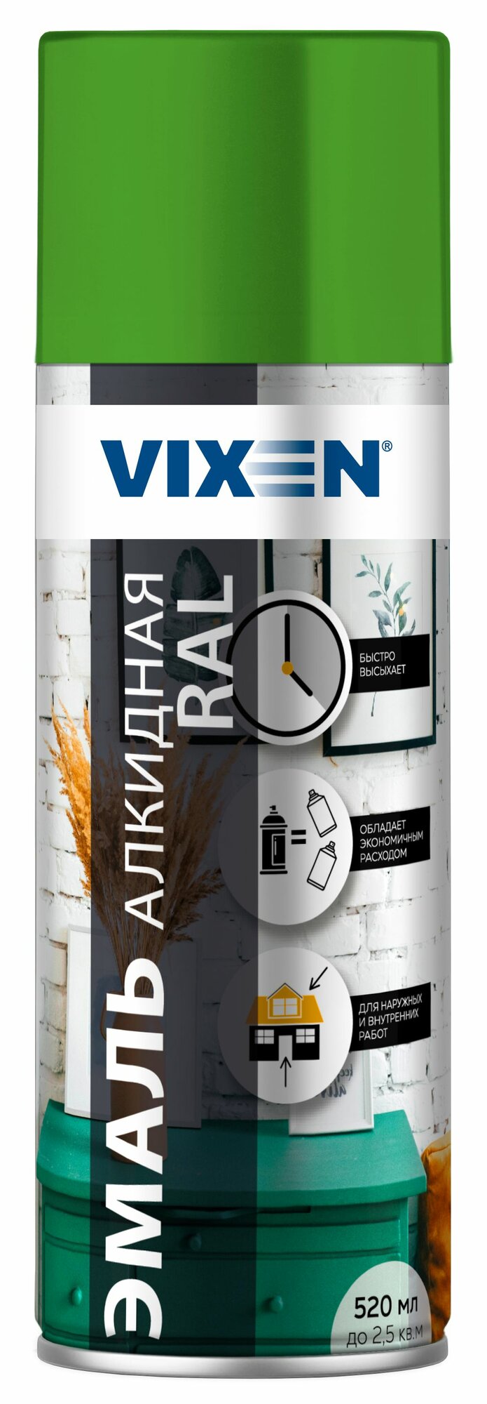 Эмаль Vixen универсальная, RAL 6018 светло-зеленый, глянцевая, 520 мл, 1 шт.