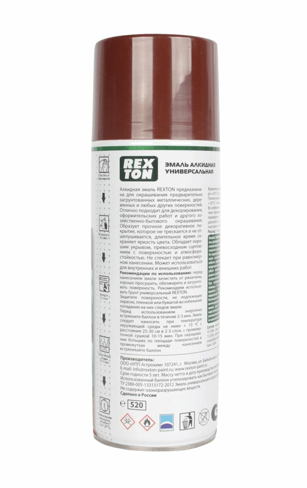 REXTON RT100.60 Эмаль алкидная универсальная, коричневый, аэрозоль 520 мл REXTON RT100.60