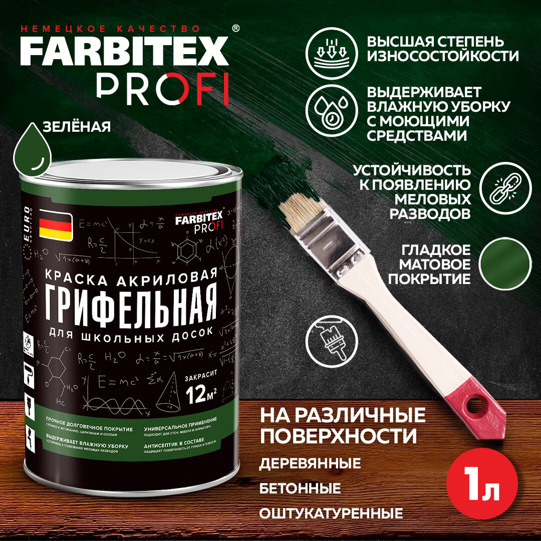 Краска грифельная для школьных досок FARBITEX PROFI 1 л зеленая интересное:
