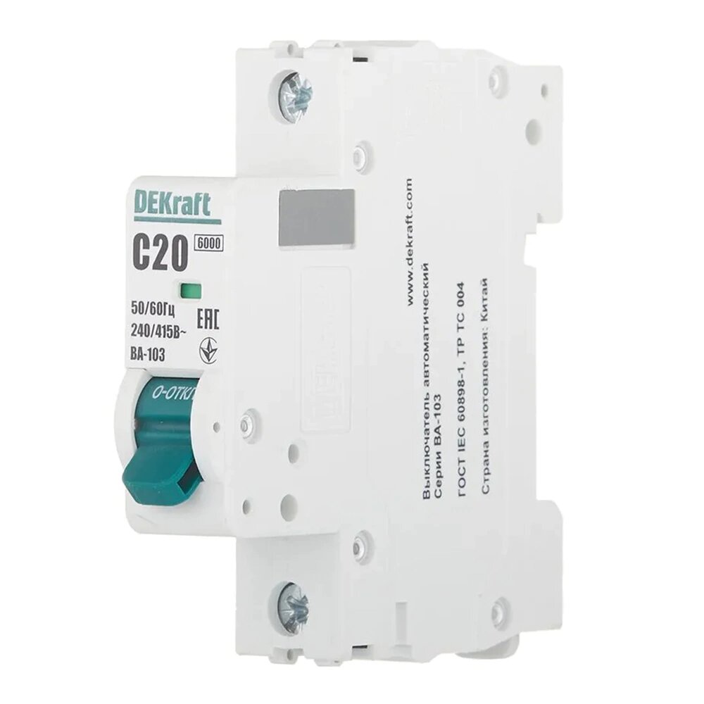 Выключатель автоматический DEKraft ВА-103, 1Р, 20 А, 6 кА, тип С