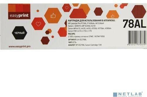 Картридж лазерный Easyprint LH-CE278AL (CE278A/Canon 728/726) для принтеров HP/Canon, черный, двойной объём интересное: