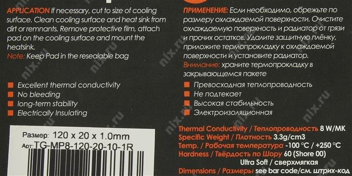Купить Термопрокладка Thermal Grizzly Minus pad 8 120 мм 20 мм 1 мм 1 шт. TG-MP8-120-20-10-1R
