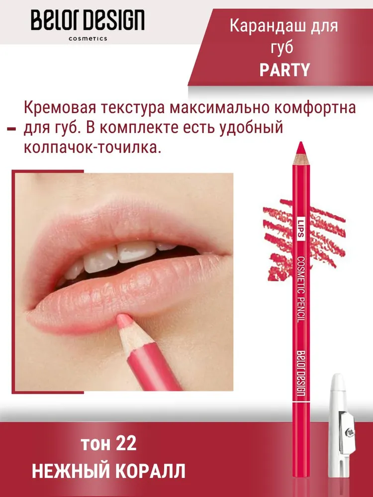 BelorDesign Карандаш косметический контурный "Party" для губ, тон 22 нежный коралл