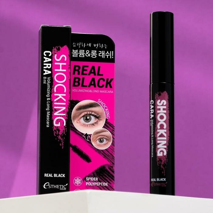 ESTHETIC HOUSE Удлиняющая тушь для ресниц, Корея, Shocking Cara Volumizing&Long (Real Black), черная 8 мл