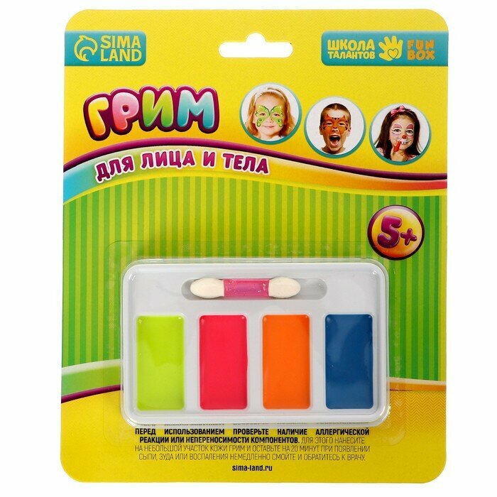 Грим для лица и тела, 4 цвета, аппликатор, 1 наб.