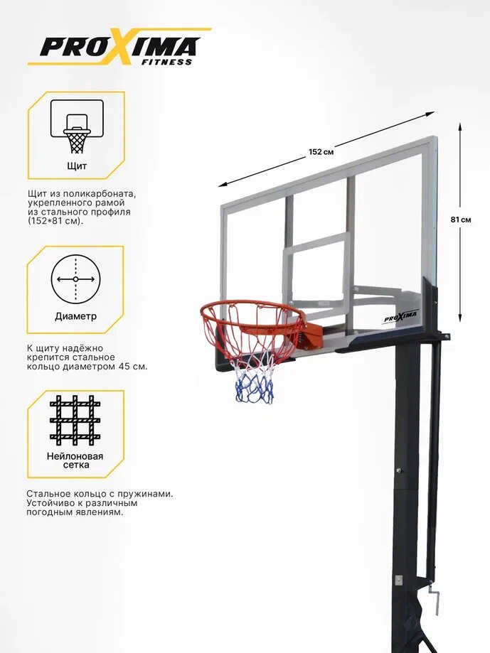 Мобильная баскетбольная стойка Proxima 60 поликарбонат S023