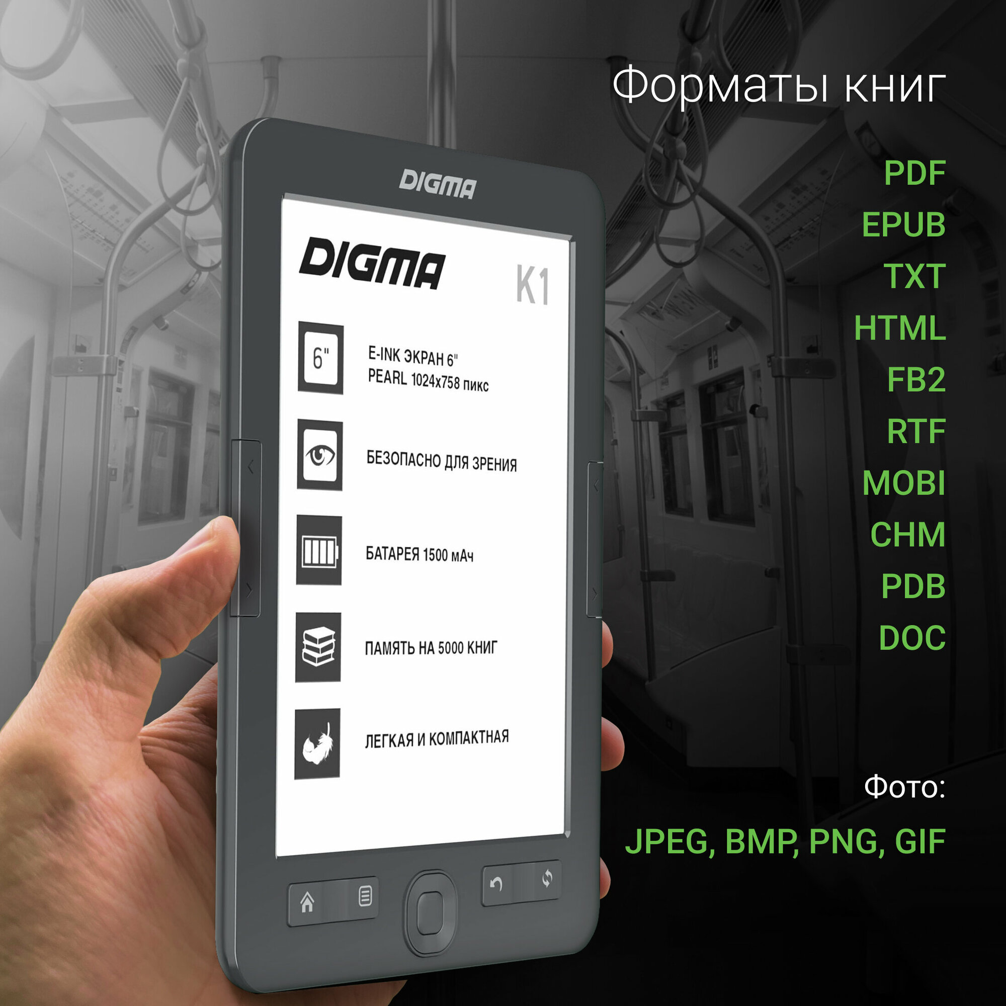 Купить Электронная книга 6" Digma K1 E-Ink, 4Gb, темно-серый