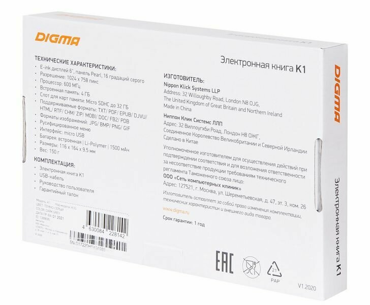 Электронная книга Digma K1G .