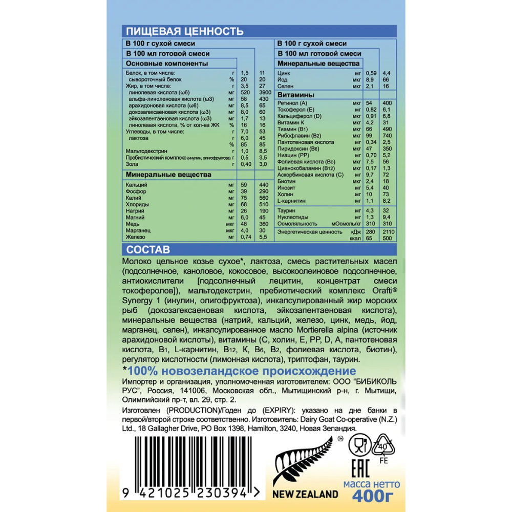 Молочная смесь Бибиколь нэнни 1 с пребиотиками на основе козьего молока с рождения 400 г