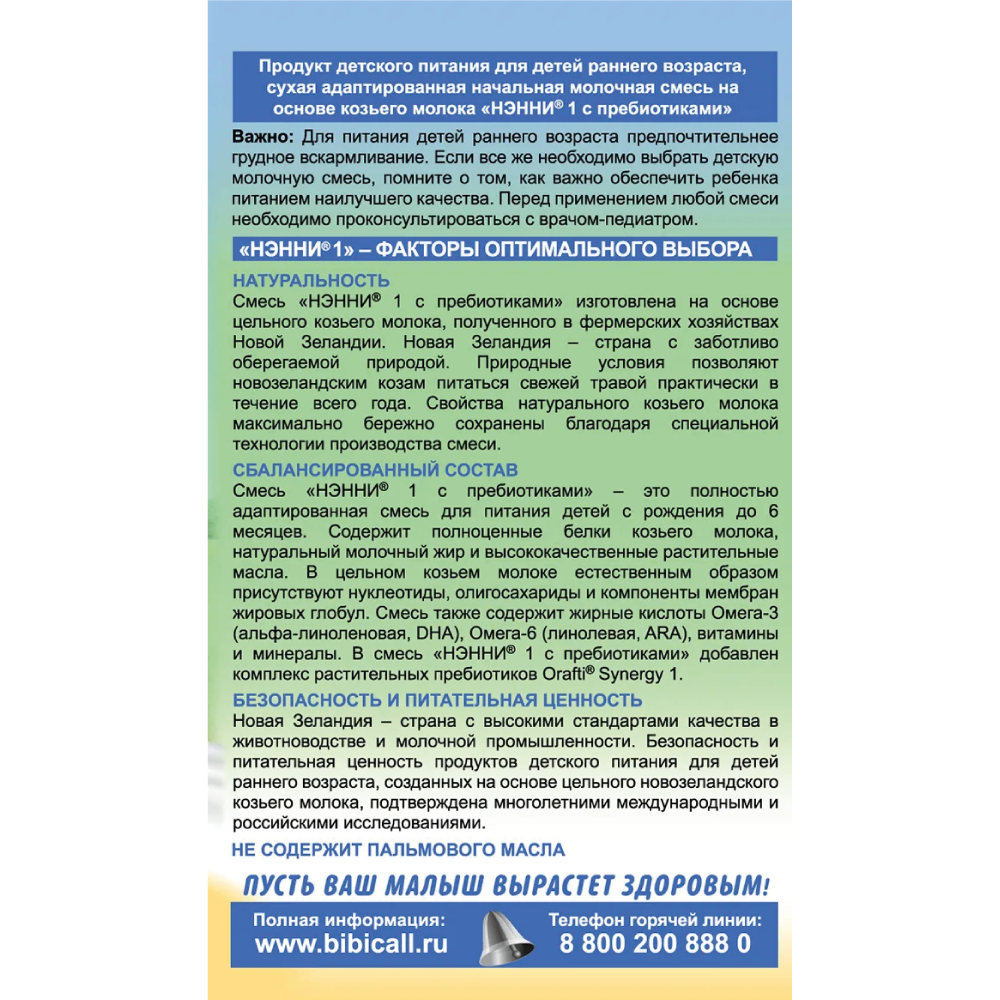 Смесь бибиколь Нэнни 1 с пребиотиками, с 0 до 6 месяцев, 400 г