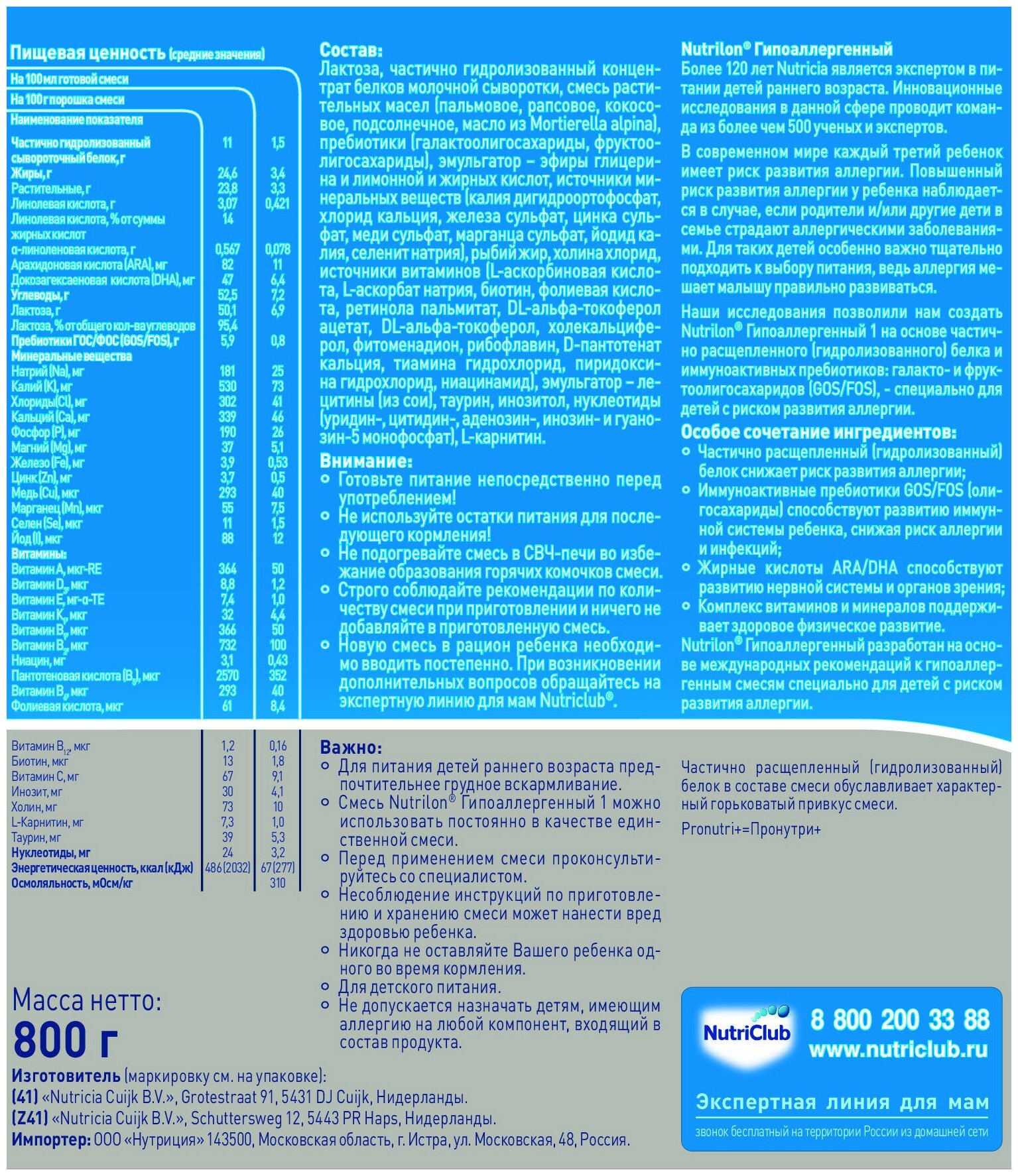 Смесь молочная Nutrilon гипоаллергенная 1, 800г