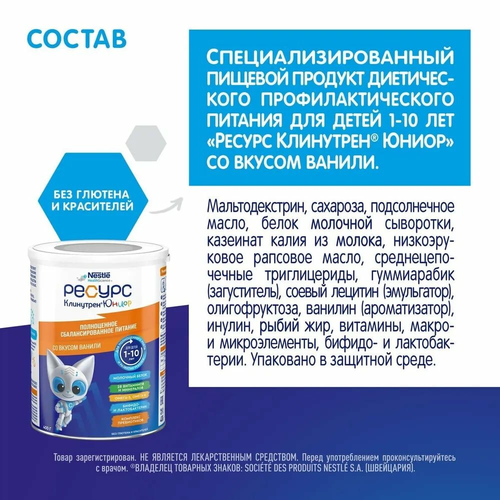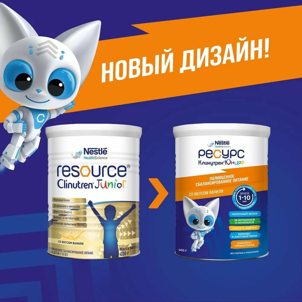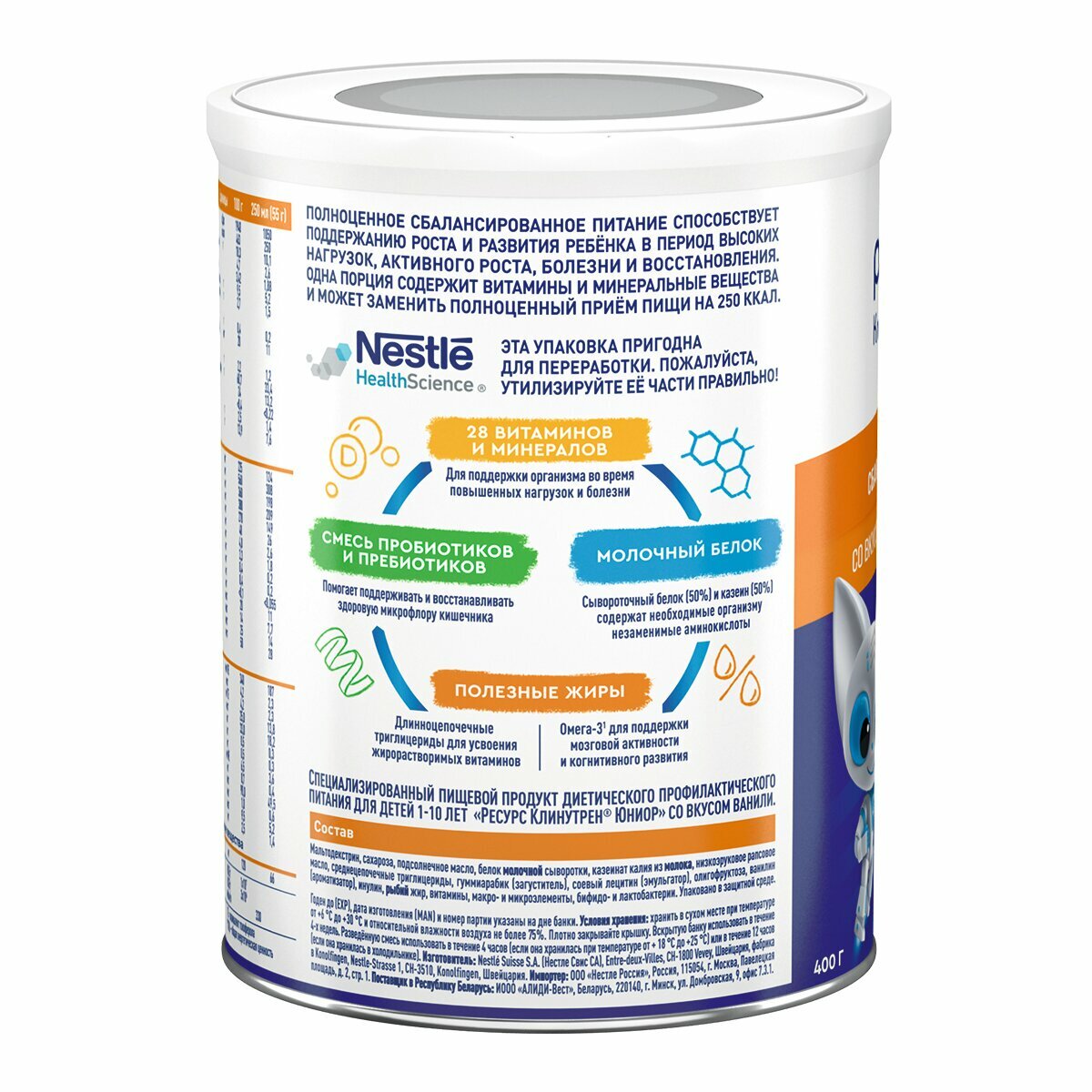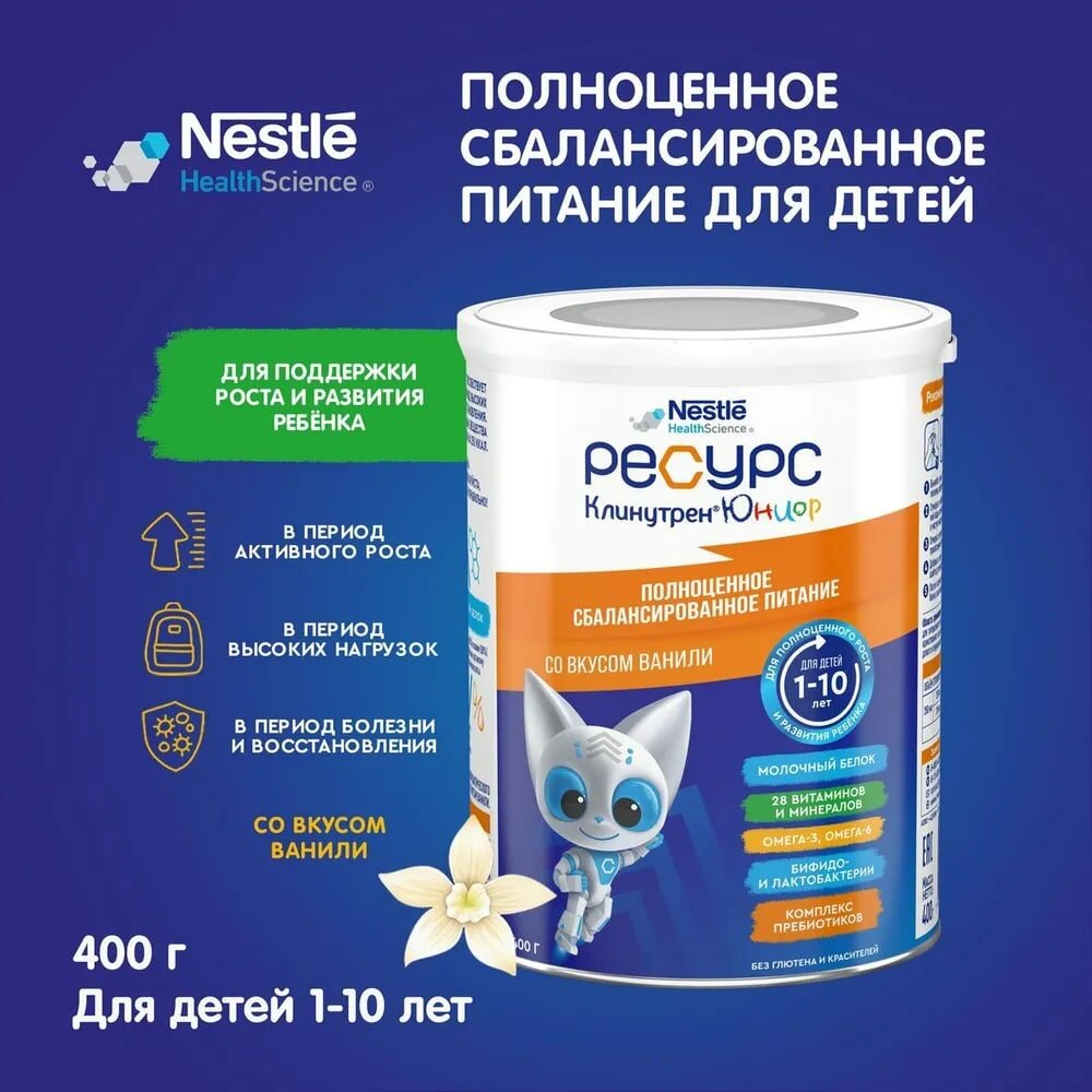Смесь Nestle Ресурс Клинутрен Юниор с ароматом ванили, с 12 месяцев, 400г