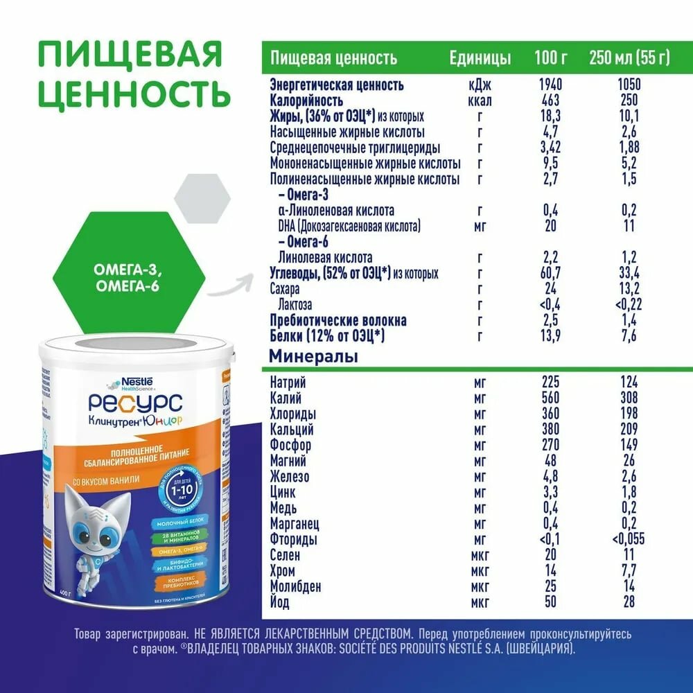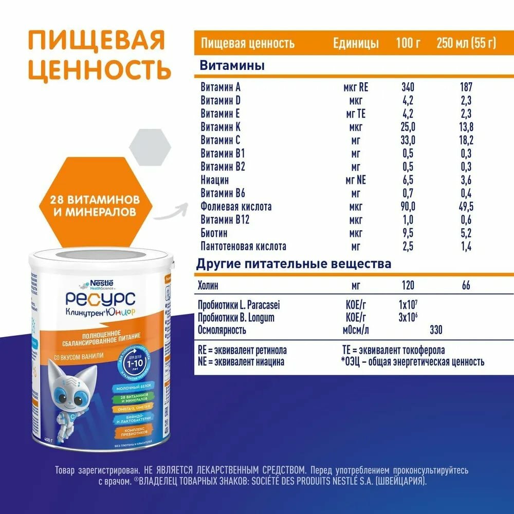 Ниже Вы можете прочитать отзывы на Nestle Ресурс Клинутрен Юниор с ароматом ванили, 400г 2 шт, ознакомится с подробными характеристиками, посмотреть интересные обзоры и фотографии на Nestle Ресурс Клинутрен Юниор с ароматом ванили, 400г 2 шт.