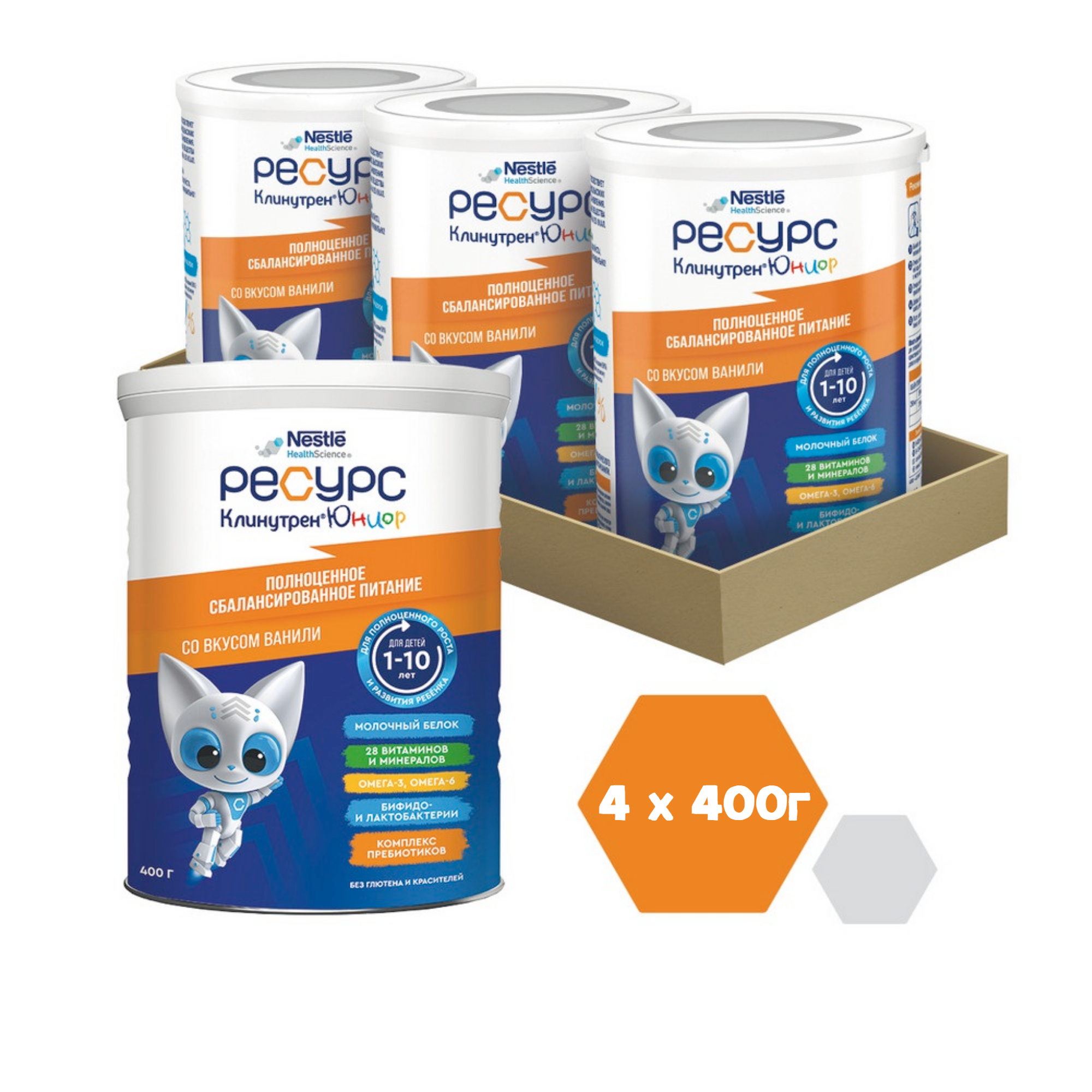 Купить Nestle Ресурс Клинутрен Юниор с ароматом ванили, 400г 4 шт