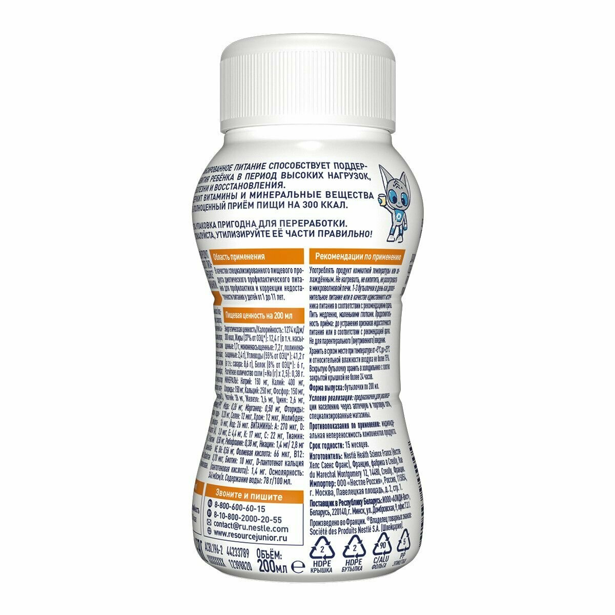 | Отзыв: | Дочка посещает бассейн 3 раза в неделю. Нам не всегда удается полноценно поесть в промежутке между занятиями в школе и в бассейне, часто бывает что все делаем набегу. Я знаю, что это не правильно, поэтому бутылочки с ресурс клинутрен юниор стали нашей палочкой-выручалочкой. Напиток удобно брать с собой как в школу, так и на тренировку. Бутылочка надежна защищена от протекания металлизированной мембраной, поэтому в каком состоянии (горизонтальном или вертикальном) она лежит в сумке у дочки и не волнуюсь. 1 порция (всего 200 мл) заменяет полноценный прием пищи, при это мой ребенок получает сбалансированное количество белков, жиров и углеводов, что для нас очень важно.