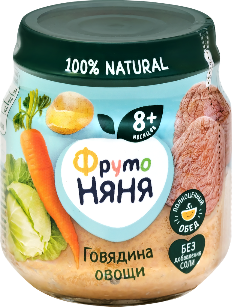 СохранитьФрутоНяня Пюре из Говядины с Овощами (Картофель, Капуста, Морковь) {с 8 мес} ст/б 100г. интересное:
