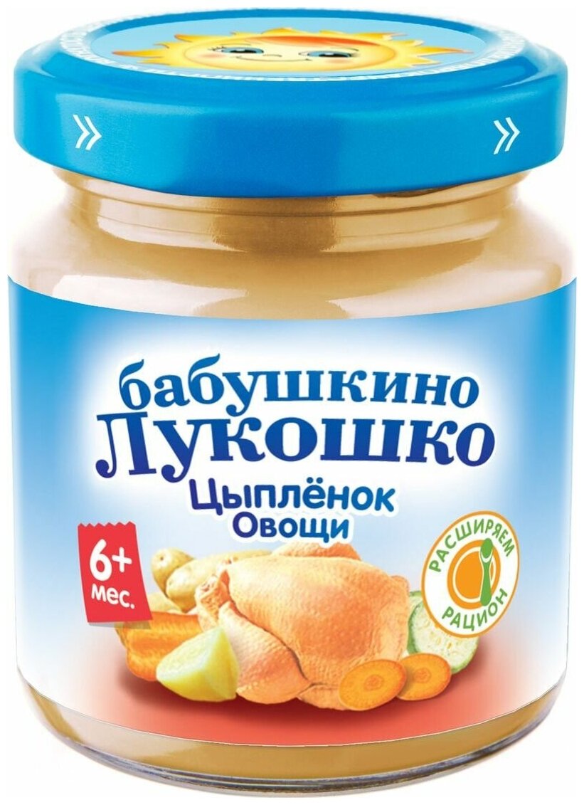 Пюре Бабушкино Лукошко Цыпленок-овощи (с 6 месяцев), 100 г