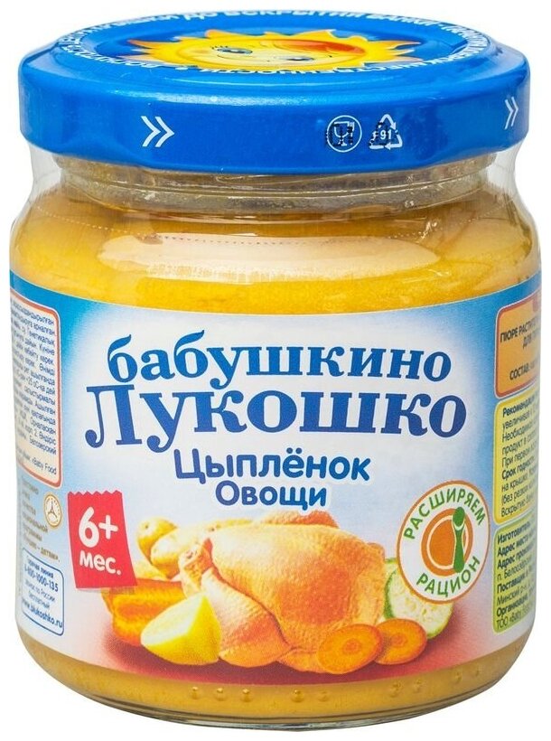 Пюре Бабушкино Лукошко Рагу цыпленок-овощи с 6 месяцев 100 г интересное: