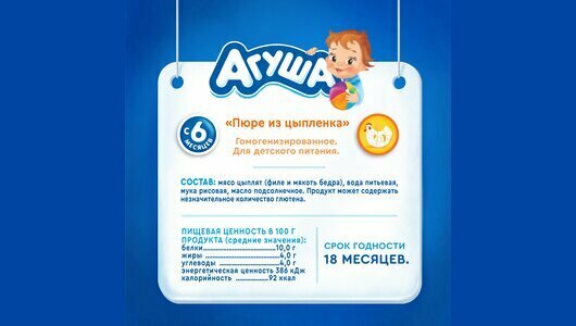 Пюре Агуша цыпленок с 6 месяцев 80 г интересное: