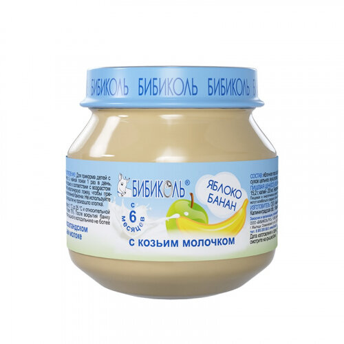 Купить Пюре Бибиколь яблоко и банан с козьим молочком с 6 мес. 80 г (6 штук в упаковке)