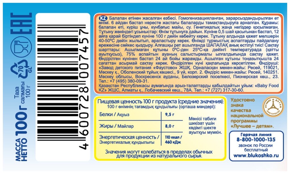 Пюре Бабушкино Лукошко из цыпленка с 6 месяцев 100 г интересное: