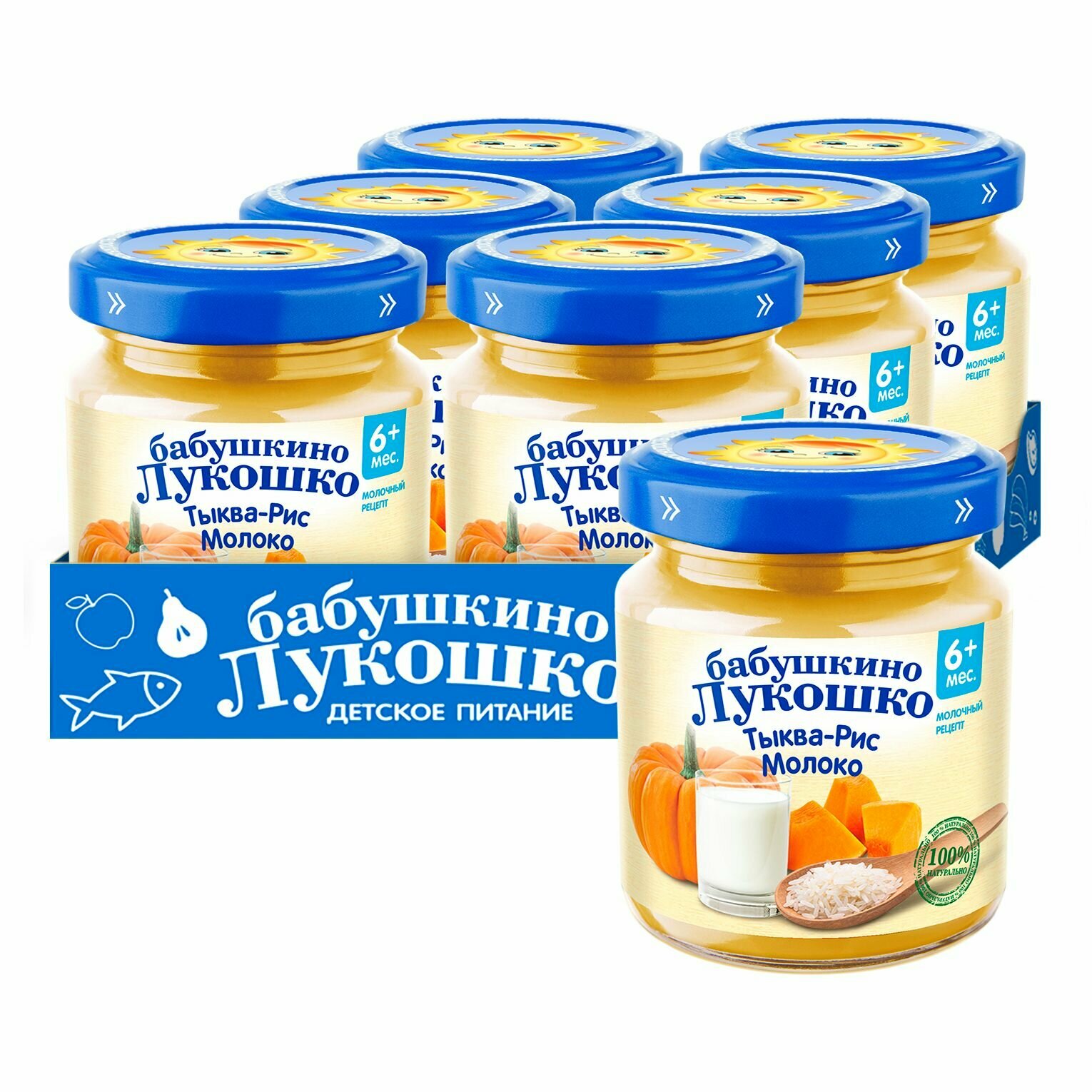 Пюре Бабушкино Лукошко тыква-рис-молоко, с 6 месяцев, стеклянная банка, 100 г, 6 шт.