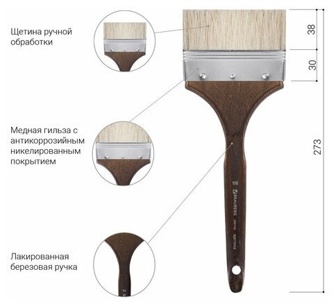 Кисть художественная Brauberg профессиональная ART "CLASSIC", щетина, флейц, № 100, короткая ручка ()