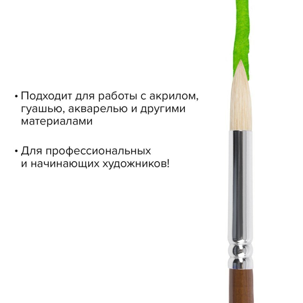 Кисть художественная профессиональная BRAUBERG ART CLASSIC, щетина, круглая, № 6, длинная ручка, 1 шт