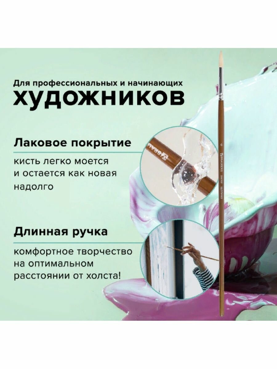 СохранитьКисть художественная профессиональная BRAUBERG ART CLASSIC, щетина, круглая, № 6, длинная ручка, 200709 Комплект : 5 шт . интересное: