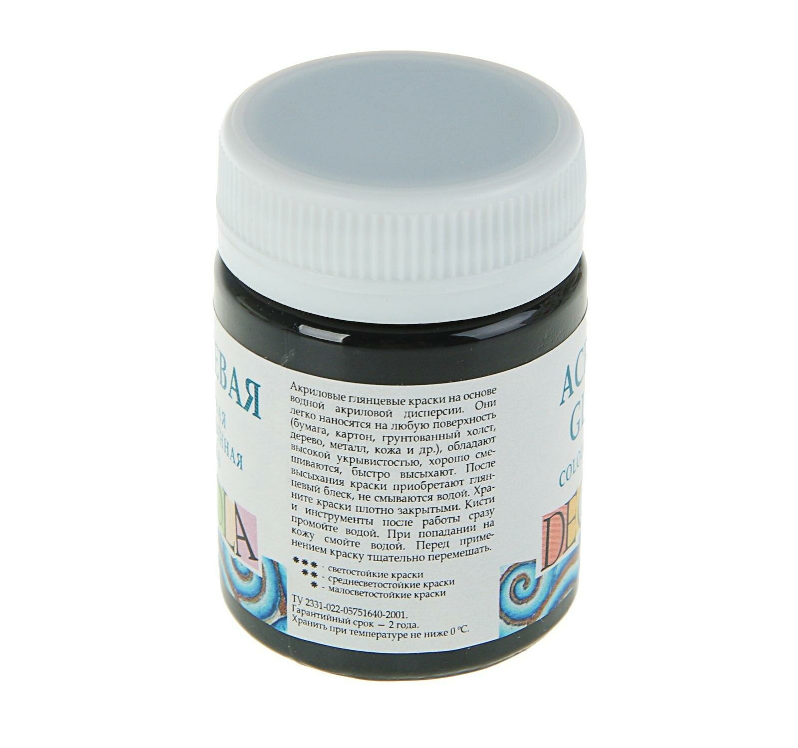 Краска акриловая глянцевая 50 мл,, чёрная, 2928810
