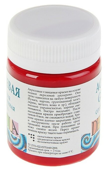 Краска акриловая художественная Decola, 50мл, глянцевая, баночка, красный ( Артикул 282840 )