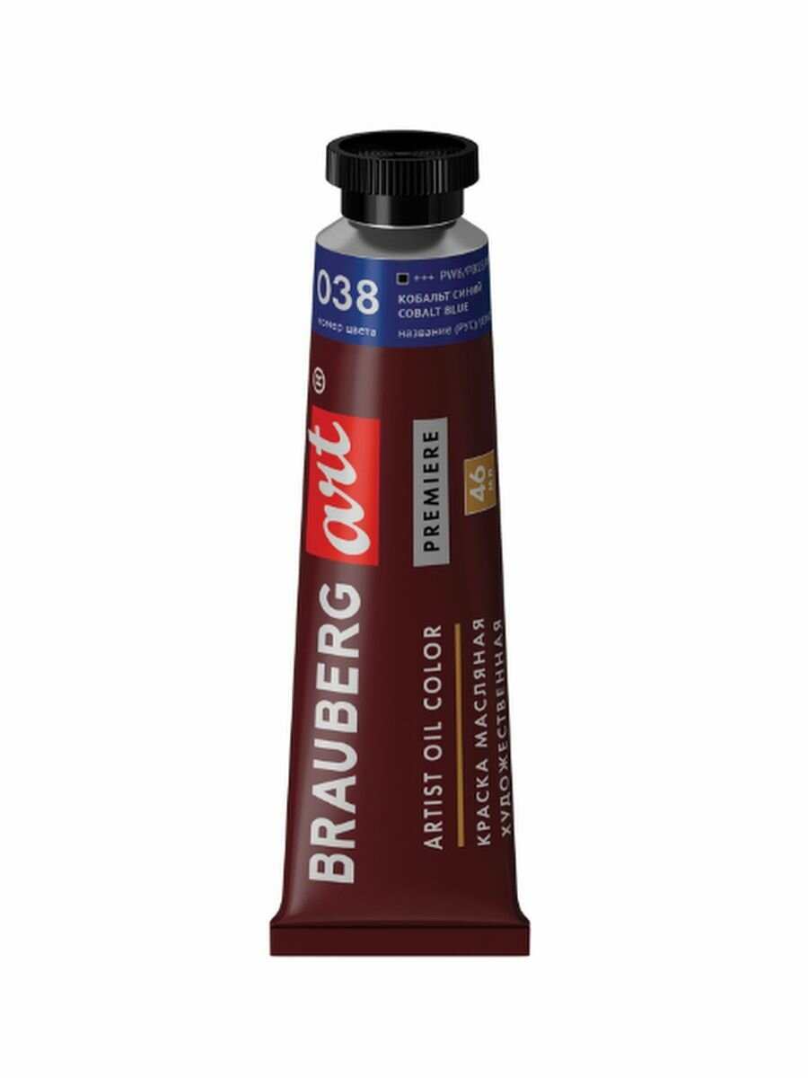 Краска масляная художественная BRAUBERG ART PREMIERE, 46 мл, проф. серия, кобальт синий, 191415