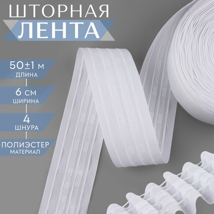 Шторная лента, матовая, 6 см, 50 ± 1 м, цвет белый интересное: